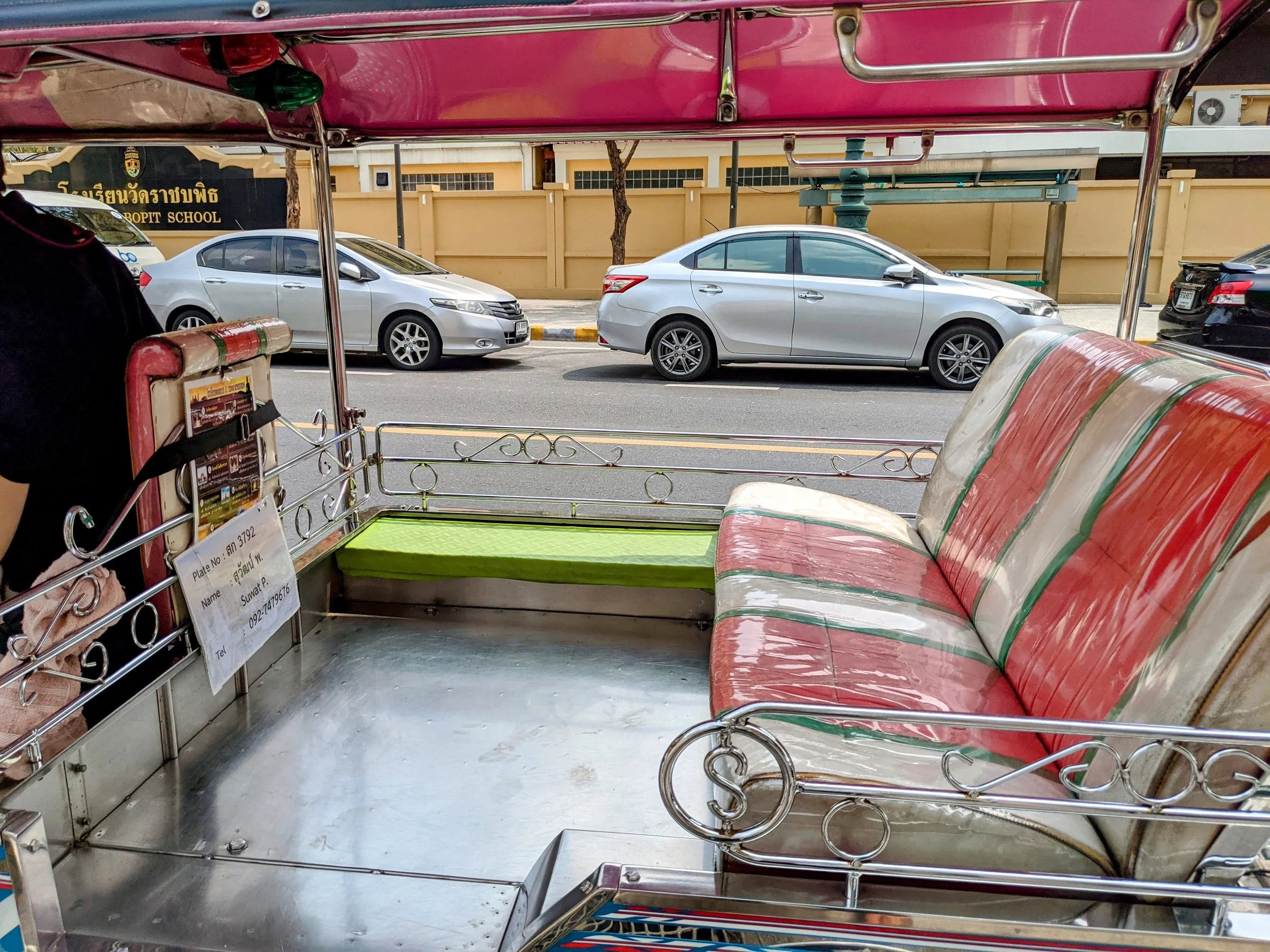 The second thing one will see is strange carts with engines driving on the roads, sidewalks, or just sitting parked on the side of the street. The man inside will attempt to convince you that you need to be driven somewhere. Unfortunately, we have needed to use these “vehicles'' more than once, as our family doesn’t fit in most cabs. You may be thinking, “Wow these carts are larger than a cab!” No, no they’re not. They are about half the width, and two thirds the length of a normal cab. They have no doors or seat belts, and only have one row of seats about the size of two normal car seats. The reason we can use them is because of their patented, “Barely a seat technology.” This cutting edge technology is a platform, which I cannot tell if it is a seat or an elevated area of floor made for the wheel or the engine to fit underneath. This barely a seat ™ is simply a part of the floor, which is about 4 inches higher, along the side of the tuk tuk. The drivers either don’t notice, or don’t care that they are in a tiny cart with no seat belts or walls, and drive as if they are in nascar.